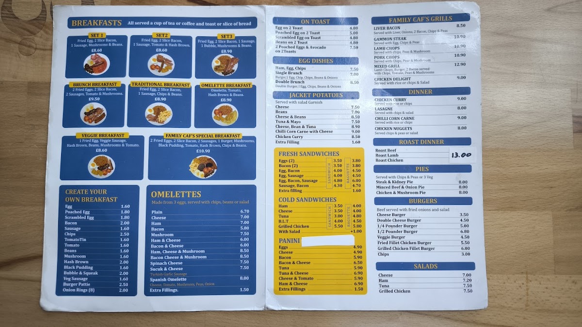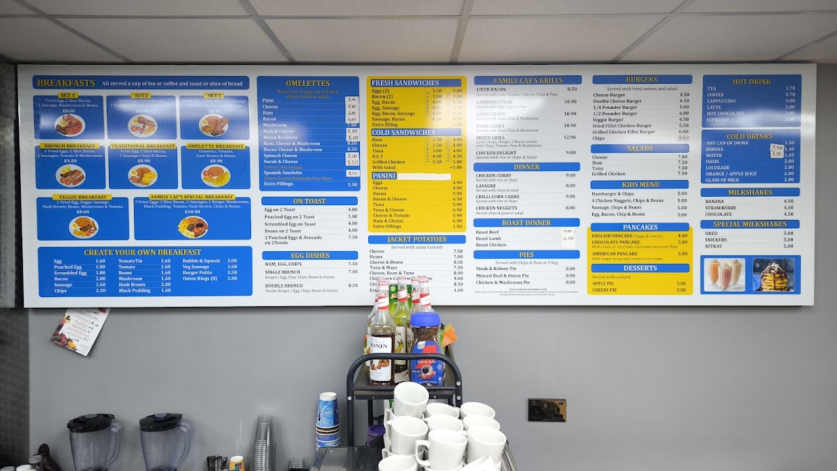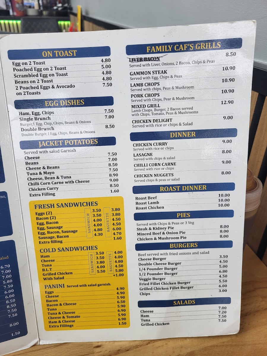 The menu at Family Cafe is organized to cater to a variety of meal times and preferences, offering a selection of traditional cafe dishes, grilled options, and specialty drinks. It is well suited for breakfast, light meals, and casual dining.